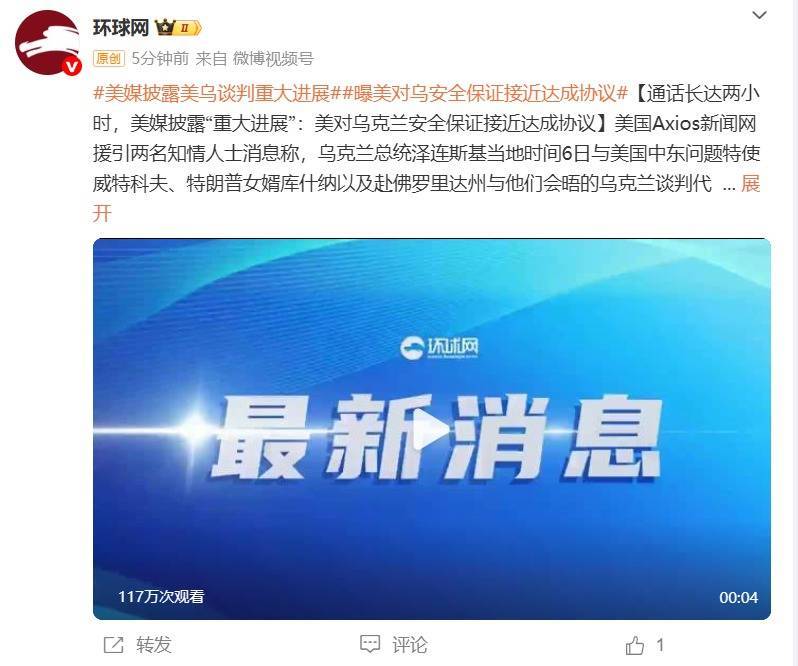 据环球网援引美国Axios新闻网援引两名知情人士消息称,乌克兰总统泽连斯基当地时间6日与美国中东问题特使威特科夫、特朗普女婿库什纳以及赴佛罗里达州与他们会晤的乌克兰谈判代表通话长达两小时,其间讨论了领土与安全保障等问题。