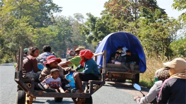 类似的逃难场景在边境另一侧同步上演:柬埔寨柏威夏省的公路上,无数家庭骑着摩托车,载着简单的行李,像潮水般涌向内陆寻求安全。
